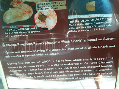 Image 2. A note about a whale shark killed by a 3 inches plastic (Taken at Okinawa Aquarium)